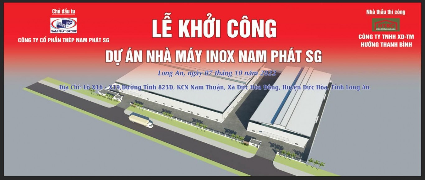 Ngày 07.10.2022, Nam Phát Group và Inox Nam Phát vui mừng tiến hành động thổ xây dựng Nhà máy Inox Sài Gòn tại KCN Nam Thuận - Đức Hoà - Long An với diện tích lớn tới 24 000m2, chuyên gia công, cắt xẻ thép và lốc ống, hộp Inox, trang trí, công nghiệp phục vụ cho các tỉnh miền Nam.