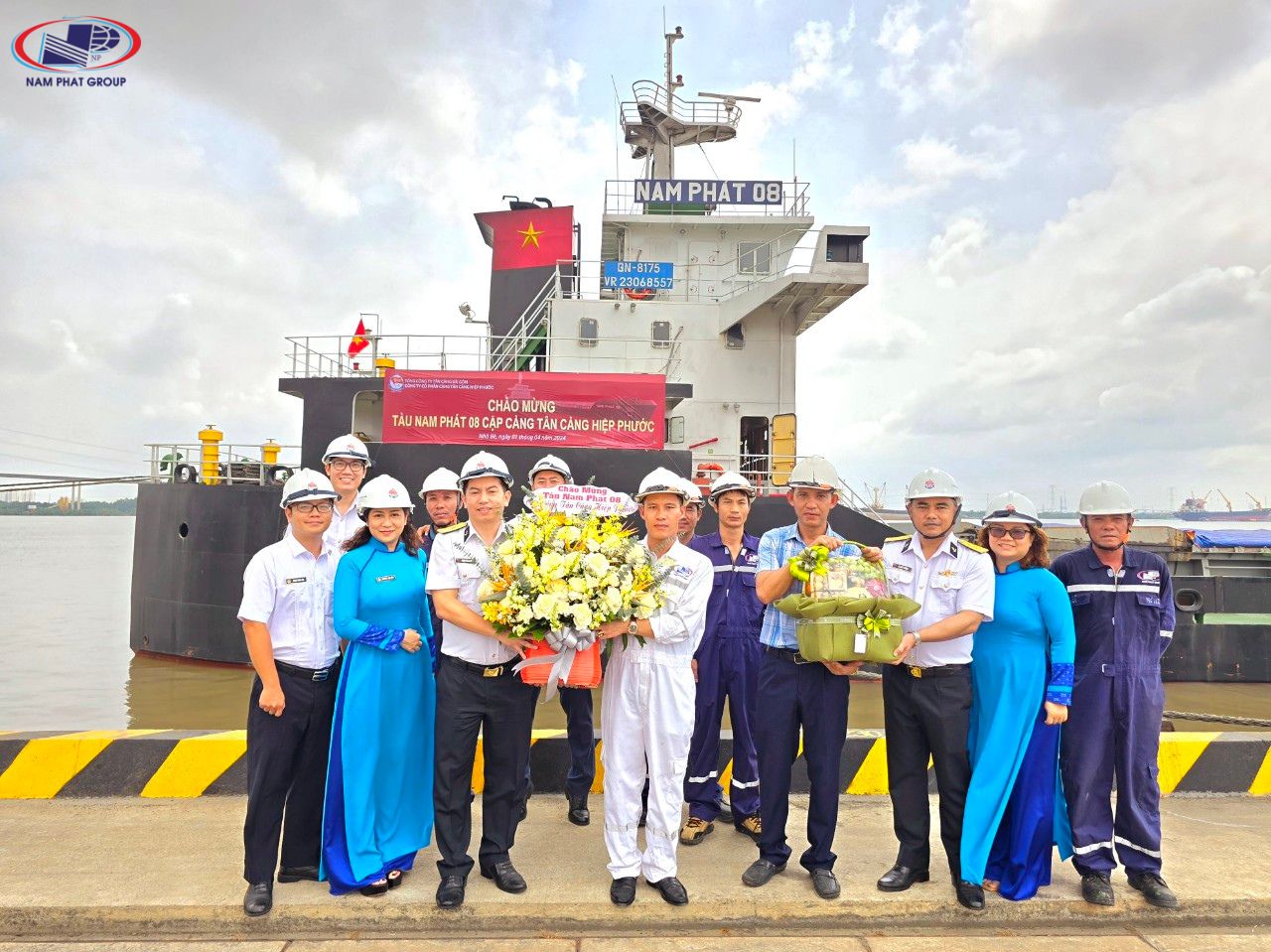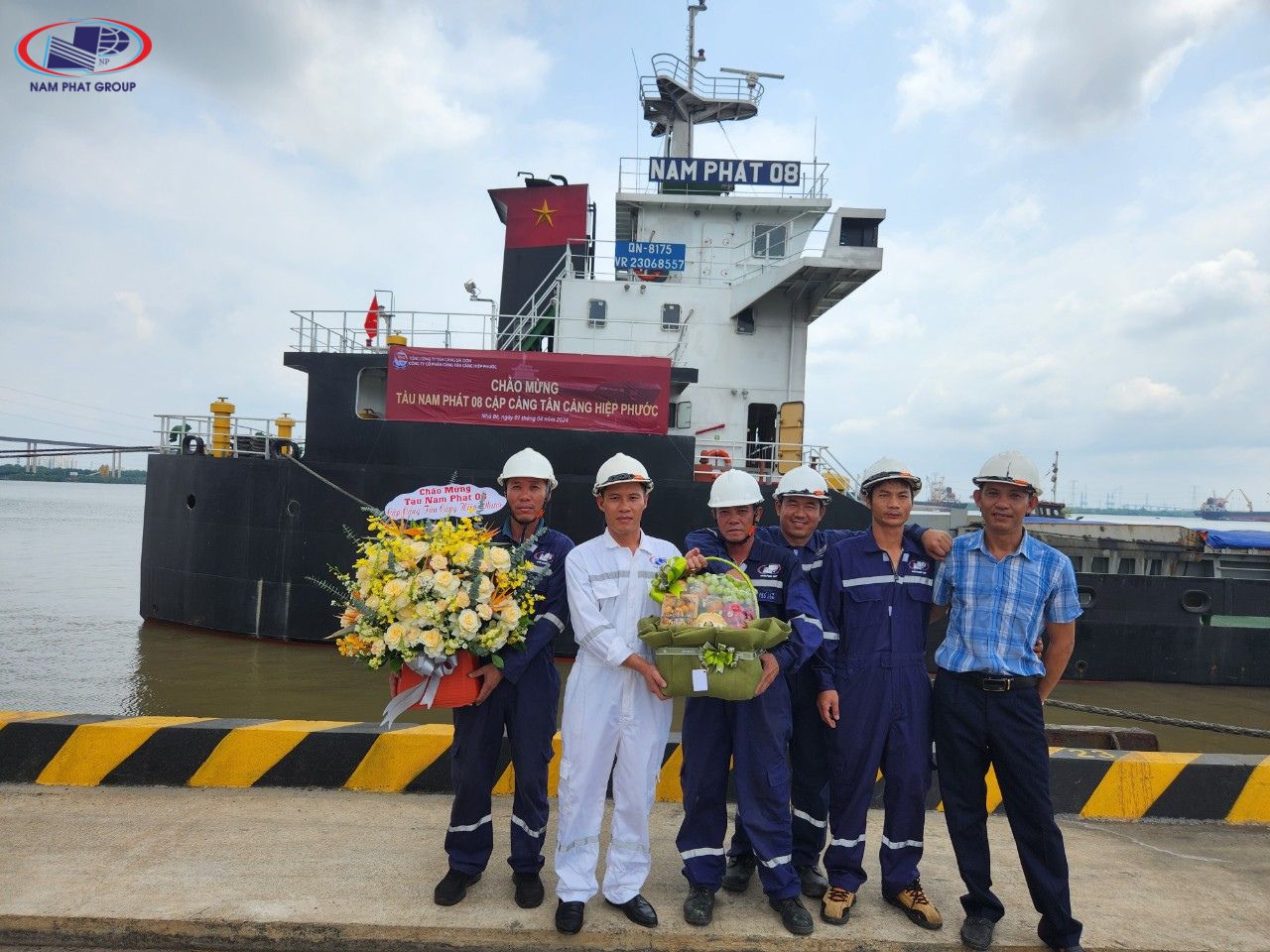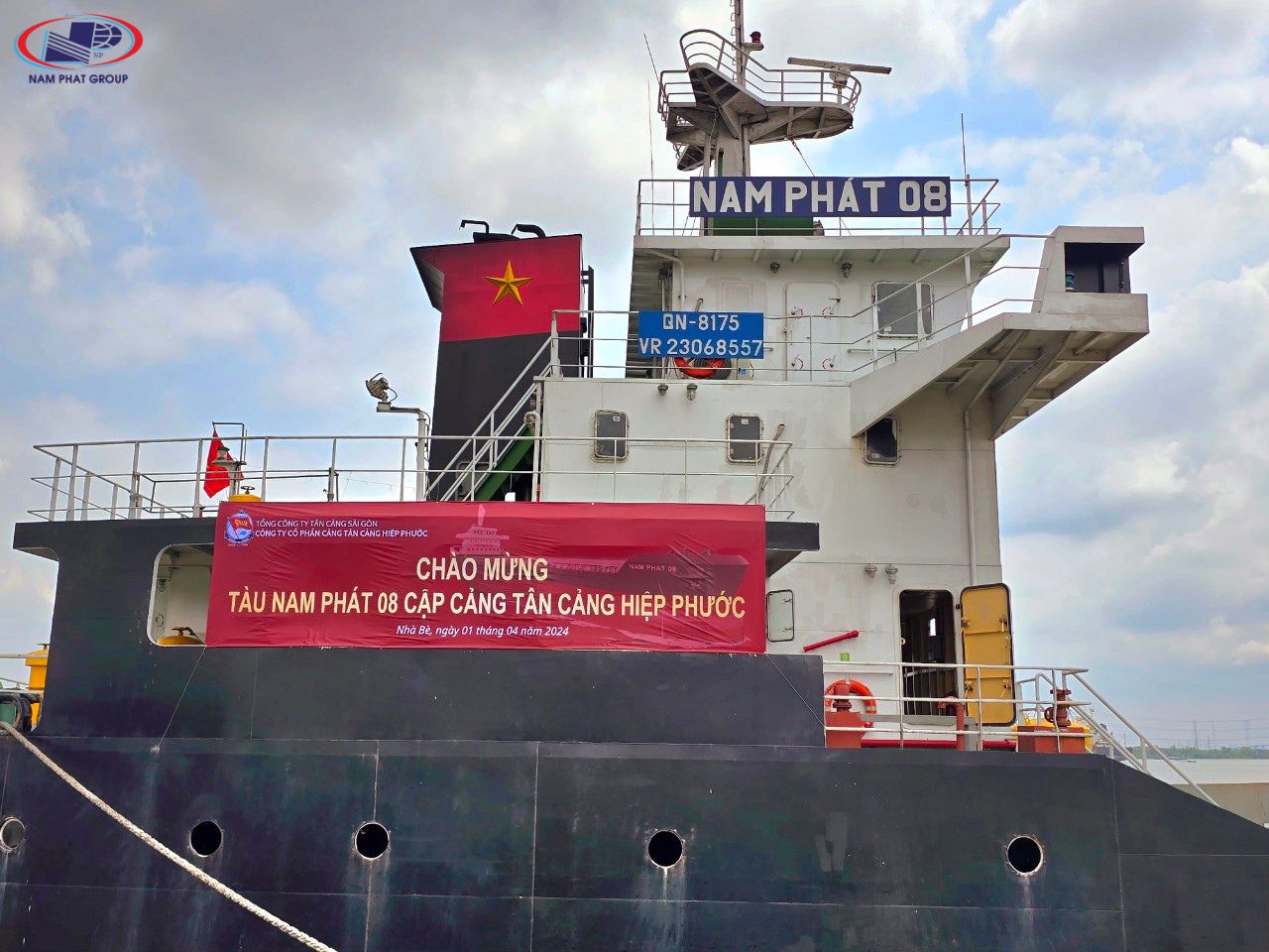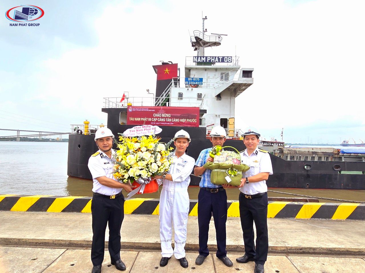Tàu vận tải Nam Phát 08 - trọng tải 8040 tấn vinh dự là tàu đầu tiên có tải trọng lớn nhất cập cảng Tân Cảng Hiệp Phước, Nhà Bè.
